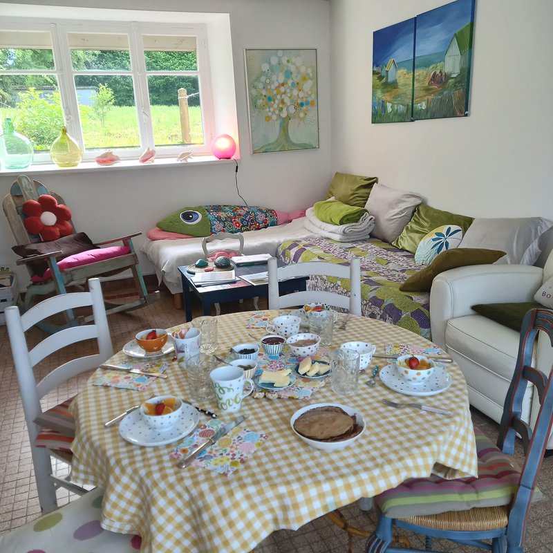 Spacieuse et lumineuse, elle offre un cadre agréable pour partager des moments de détente en famille ou entre amis, dans une atmosphère conviviale et artistique.